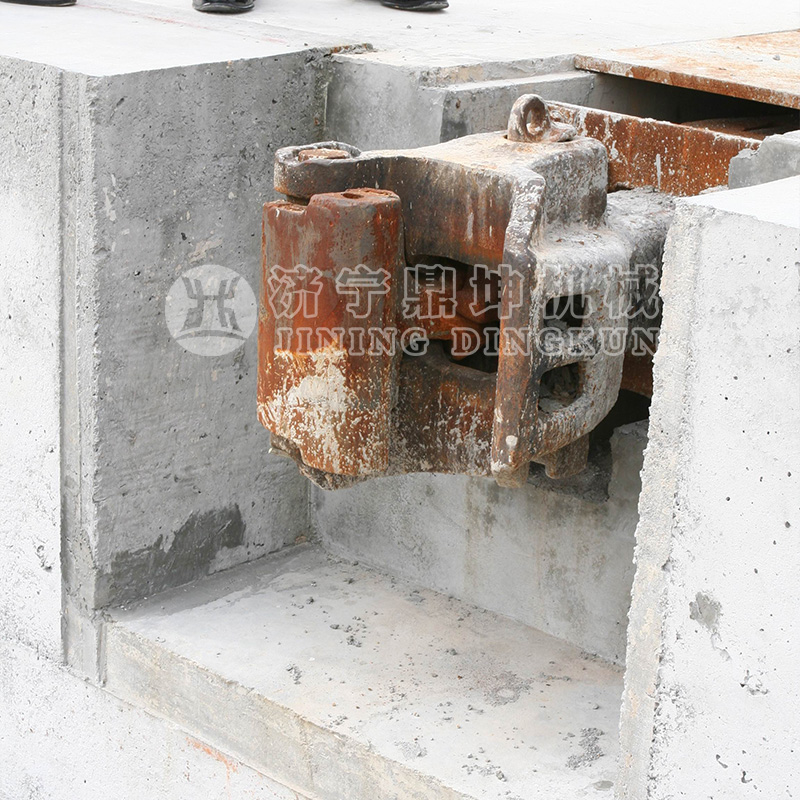 站臺(tái)一端必須設(shè)置車(chē)鉤緩沖裝置,采用13#車(chē)鉤、13B車(chē)鉤、KD5車(chē)鉤等型號(hào)的專(zhuān)用車(chē)鉤組件,并通過(guò)焊接凹形鋼槽中梁實(shí)現(xiàn)與混凝土結(jié)構(gòu)的剛性連接。